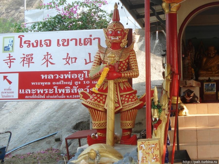 На северной стороне холма, перед небольшим природным гротом расположен Wat Tham Khao Tao – это целый ряд буддийских и других скульптур в искусственно созданной бетонной «пещере».