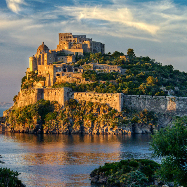 Замок выделяется как главная достопримечательность острова. Вы можете любоваться его поразительной красотой, когда на него светит солнце. Он был построен в 474 г. до н.э. Героне, использовался королем Альфонсо, но позже был преобразован в тюрьму. Вы можете совершить экскурсию по замку и внимательно изучить историю и артефакты, которые он может предложить. Вход в замок обойдется вам в 10 евро и открыт до 22:00.