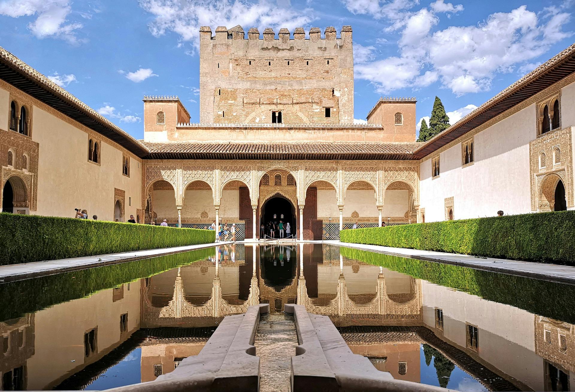 Первоначально датируется 9 th века форт и стены были капитально перестроены в 1200-х годах мавританским правителем того, что тогда было Гранадским эмиратом, Мохаммедом бен Аль-Ахмаром. Особенно красивы дворцы Насридов; построенные королями Насридами — последними мавританскими правителями Гранады — в 13 и 14 веках, в которых представлены одни из самых замысловатых интерьеров Альгамбры.