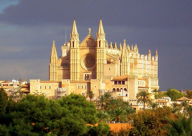 Кафедральный собор Пальмы, который был возведен на обломках бывшей мечети после освобождения острова от владычества мавров. Работы по строительству храма начались при Хайме I и продолжились при его сыне Хайме II. Окончательно собор был достроен только в XX столетии. Внутри находятся останки королей Хайме II и Хайме III. Пальмский собор является выдающимся памятником готической архитектуры Южной Европы.