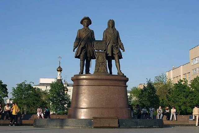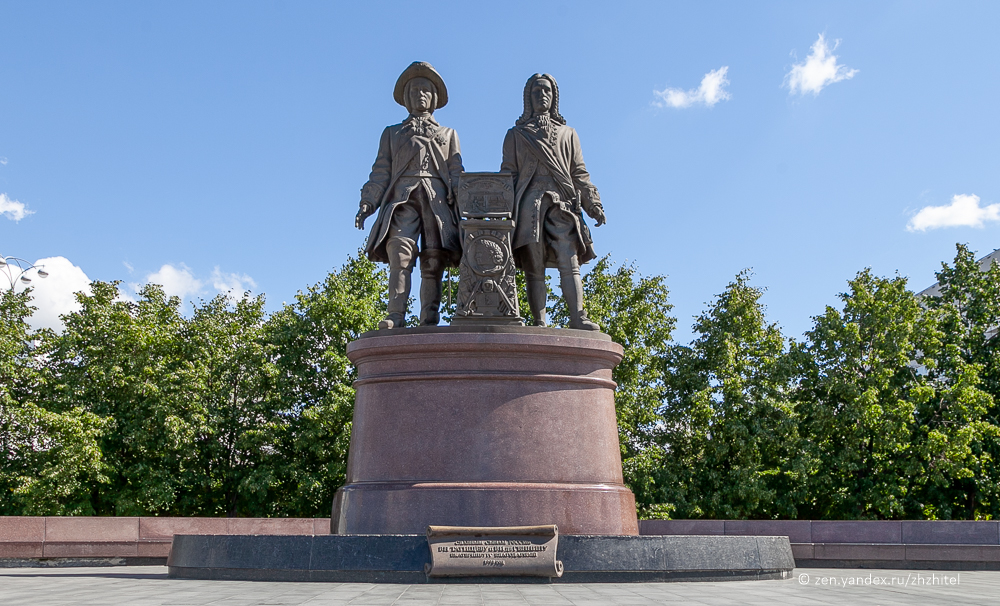 Памятник основателям Екатеринбурга Славным сынам России В.Н. Татищеву и В.И. де Геннину — молодежь Екатеринбурга привыкла называть этот памятник «Бивис и Бадхед». Обычно здесь собираются скейтеры, bmx-еры, роллеры и прочая спортивная молодежь, которая тренируется тут и показывает всяческие представления своих умений.