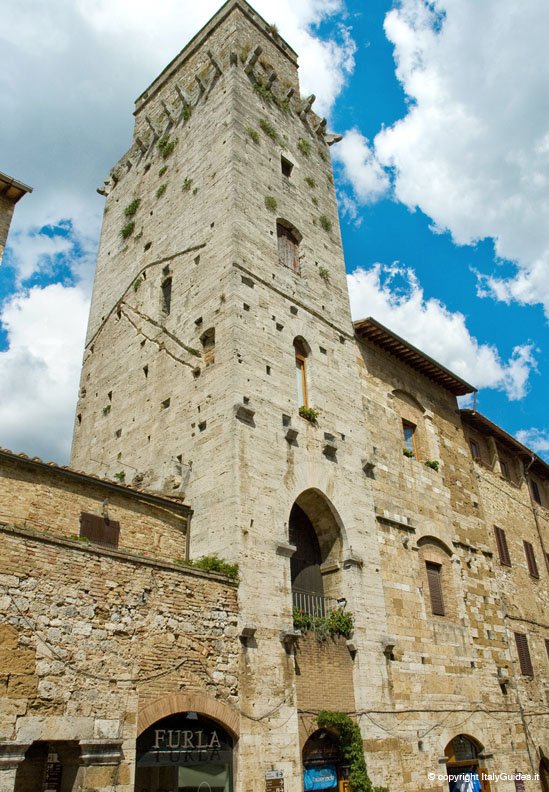 Для этой эпохи было характерно активное соперничество между наиболее влиятельными родами, которое отразилось и на архитектуре города: считалось, что кто выстроит башню выше, тот и важнее. Правда, самой высокой оставалась главная городская башня Роньоза, чьё первенство было закреплено законом. К 1300 г. в Сан-Джиминьяно насчитывалось более семидесяти аналогичных сооружений — столько же, сколько и благополучных семей в окрестностях города; сегодня из них устояло лишь тринадцать.