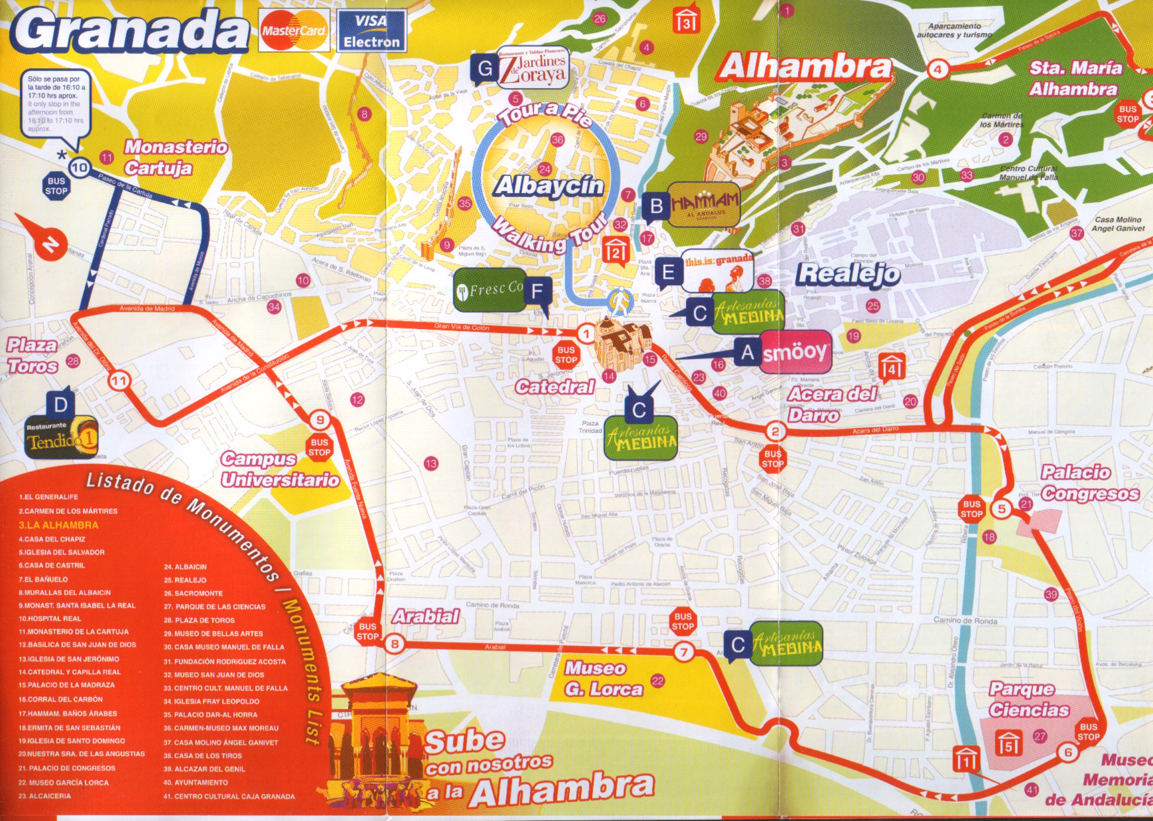 Два маршрута, а именно: дневной маршрут Альгамбра и ночной маршрут Альгамбра дадут вам возможность посетить различные достопримечательности города.