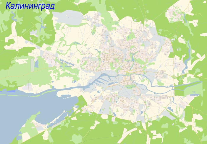 Векторная карта Калининграда (Российская Федерация, Россия), каракули эскиз карты Калининграда