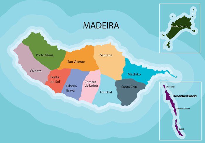 Мадейра на карте мира расположена на юго-западе от Португалии. Этот регион является автономным. Как покажет географическая карта Мадейры, архипелаг представляет собой группу островов. Это Порту-Санту, три необитаемых острова, объединенных в заповедник Дезерташ, а также мелкие островки. Административная карта Мадейры продемонстрирует, что регион находится в составе Евросоюза. Его статус определен как особая отдаленная территория.