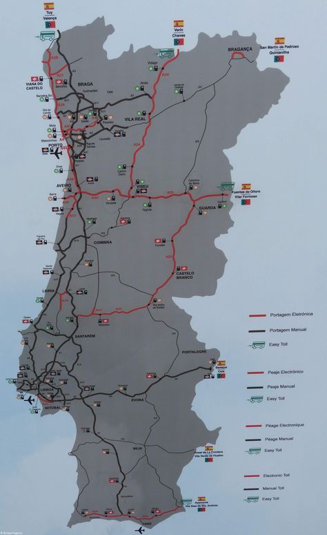 Подробная карта автомобильных дорог Португалии со всеми городами и аэропортами.