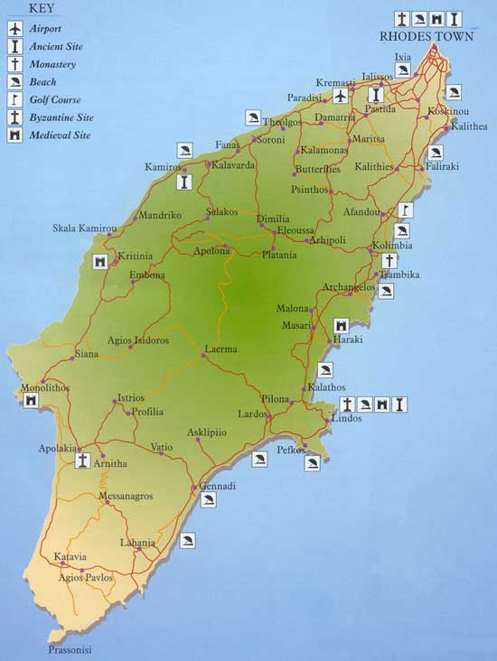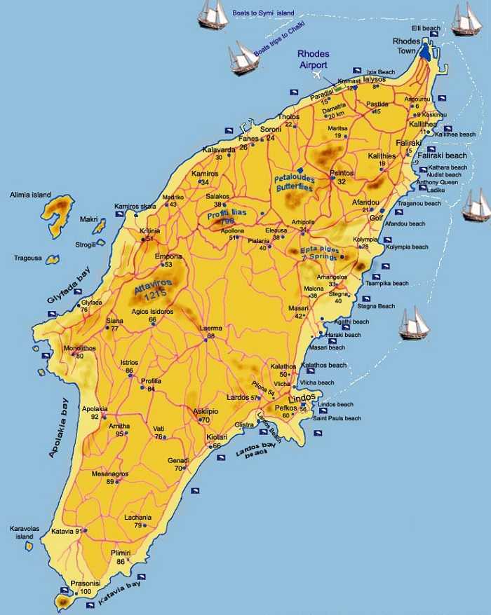 Карта острова и города Родос (Греция) с достопримечательностями на русском языке