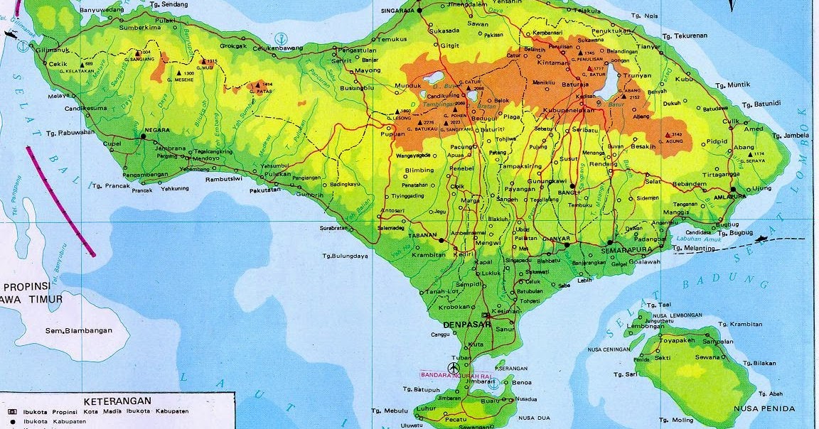 Кстати, остров Бали на карте отмечен зоной повышенной вулканической активности. На его территории расположены два активных вулкана Гунунг-Агунг и Гунунг-Батур. Чтобы полюбоваться их величием, вам необходимо отправиться в северо-восточную часть острова. Весь Бали на карте мира разделен на 6 областей.