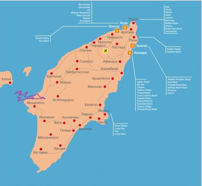 Прокат автомобилей Colossos — Остров Родос карта достопримечательностей