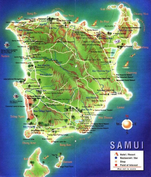 Карта Самуи — достопримечательности, отели, пляжи и многое другое