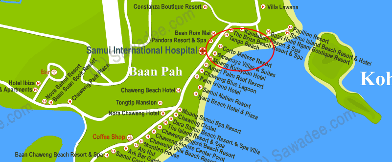 (изменить масштаб данной карты Самуи с отелями можно с помощью колеса прокрутки мыши)