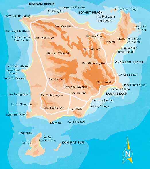Остров Самуи находится в Сиамском заливе, является вторым по размеру островом после Пхукета и не менее популярным по посещаемости туристов. Хотелось бы подчеркнуть то, что не важно, для каких целей вы хотите осуществить поездку на этот остров — для знакомства с природными достопримечательностями (белоснежными пляжами, кокосовыми пальмами, коралловыми рифами и т.д.) или для осуществления интересов сексуального характера (например, в районе пляжа Чавенг)… Важно то, что для путешествия по этой местности, вам понадобятся карты острова Самуи.