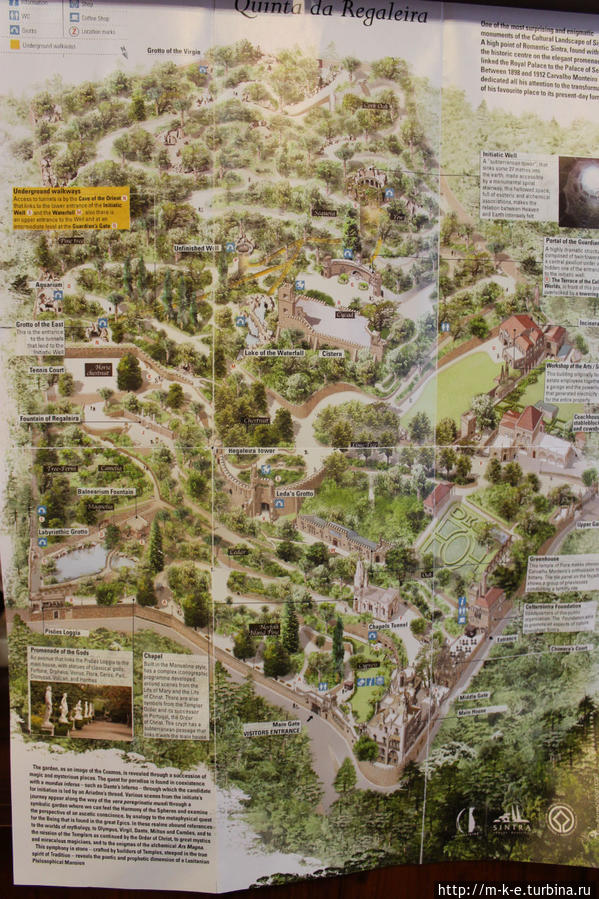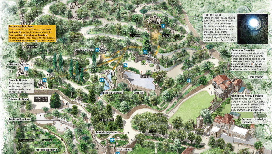 Но и это еще не все: посетителей ждет встреча с двумя глубочайшими «пусковыми колодцами» со спиральными лестницами и шахтами, ведущими в подземные святилища для церемоний Таро. Наземные постройки «Кинта да Регалейра» не менее восхитительны: множество резных беседок и изящных скульптур среди ровно выстриженных садов вызывает у туристов восторг и желание полюбоваться на это великолепие, сидя на одной из вычурно-удобных скамеек.