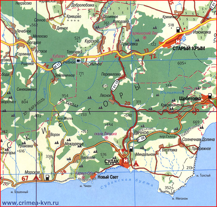 Подробная карта Крыма с городами и поселками, достопримечательности