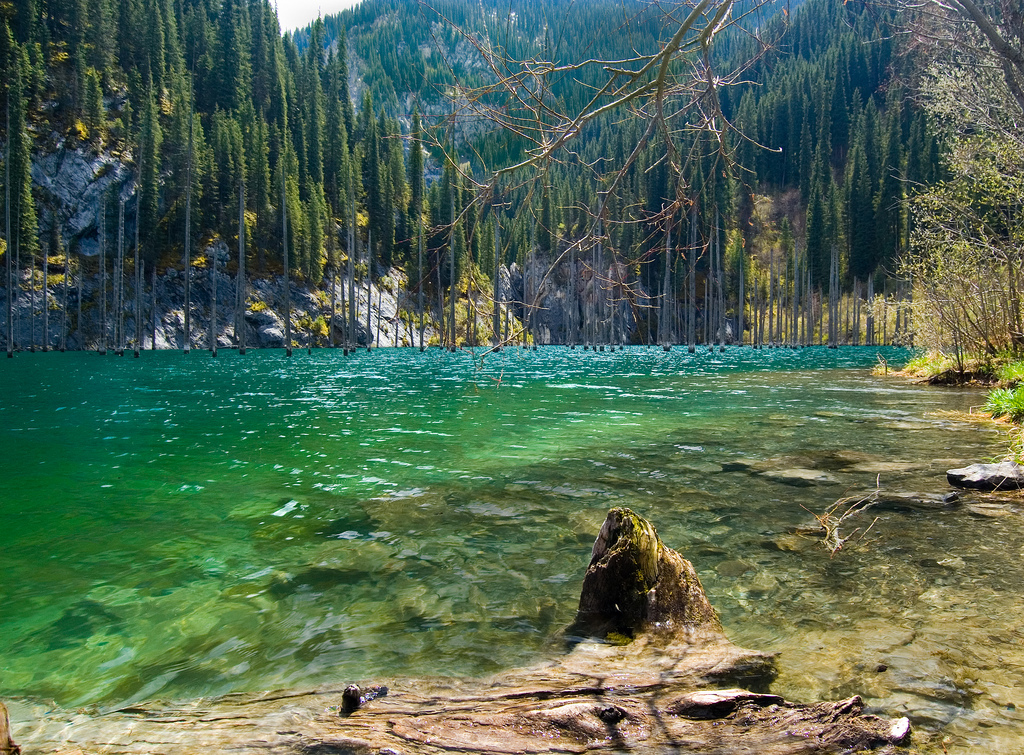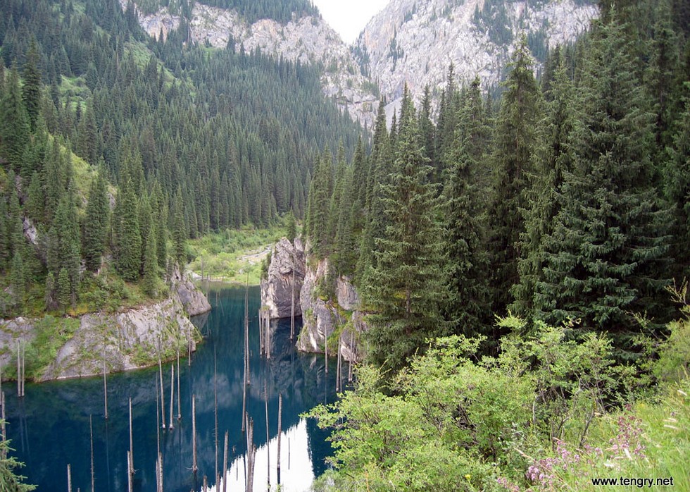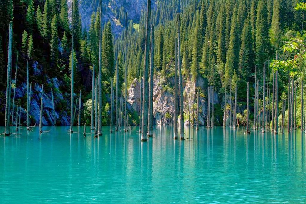 Уникальность этого озера Казахстана в том, что прямо из воды растут вековые сосны. Несмотря на огромную глубину, вода настолько чистая, что просматривается дно. Не удивительно, что эта достопримечательность манит дайверов — потрясающие подводные виды, глубина до 25 метров и меняющая оттенки вода не могут не завораживать.