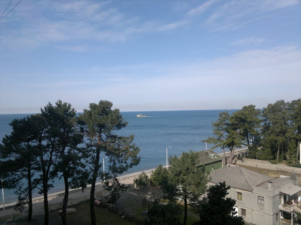 Отель на первой линии, окнами выходит прямо на море. Находится на севере Кобулети (Грузия), потому цены даже на люкс тут очень доступные.