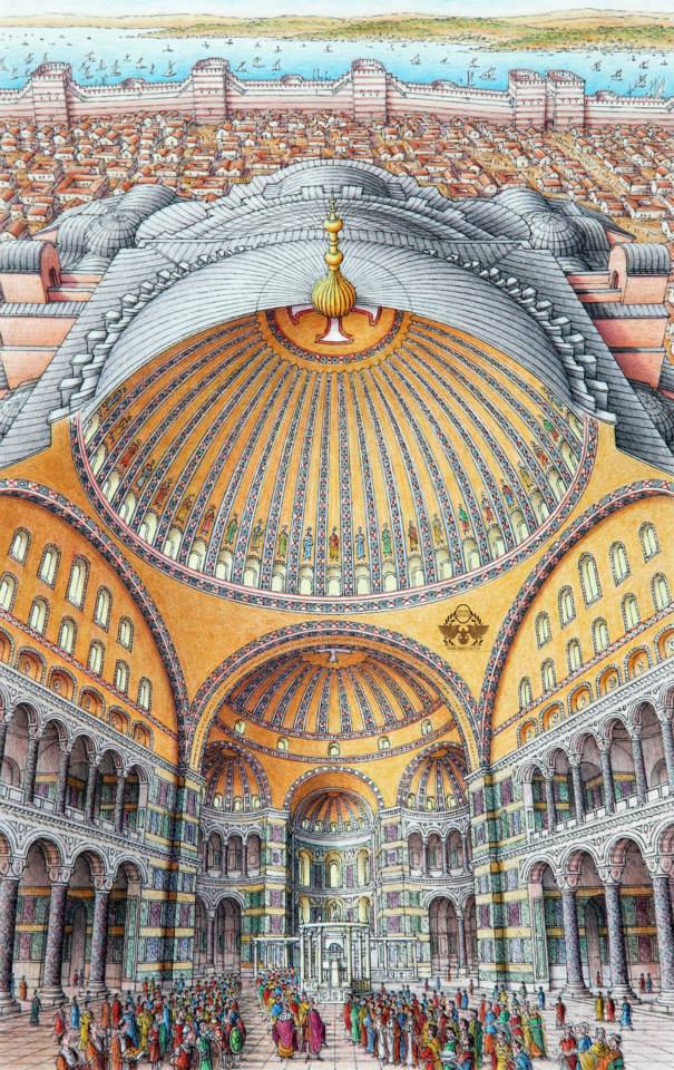 Прокопий Кесарийский, современник строительства, рассказывая о стройках императора Юстиниана, восторженно описывает собор Святой Софии: