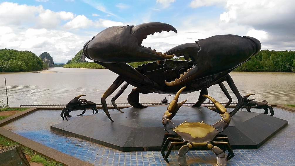 Знаменитые скульптуры крабов в городе Краби.