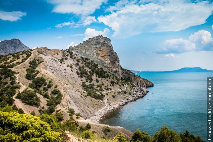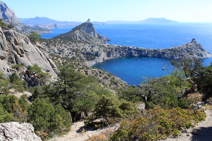 Именно с этой вершины начинается Голицынская тропа – самый популярный в Новом Свете маршрут для экскурсий. Виды отсюда открываются просто прекрасные – как на горные окрестности поселка, так и на чарующую Разбойничью бухту. И хотя Коба-Кая невысокая – ее высота всего 165 м, она неизменно попадает в фотообъективы туристов.