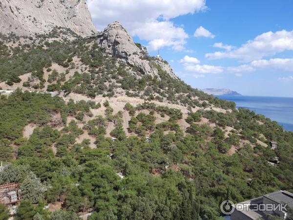 С вершины открываются замечательные виды — это одна из лучших природных «смотровых площадок» в окрестностях Нового Света. Самое удобное место занимает скала, напоминающее каменное кресло – ее связывают с именем все того же князя Голицына.