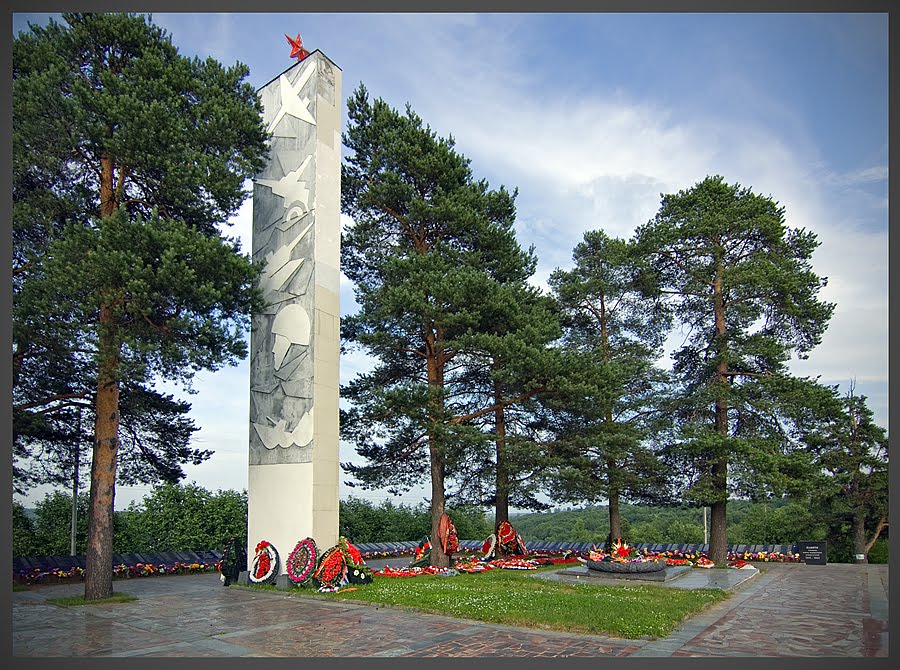 | Братское кладбище На берегу Свири вблизи школы № 4 имени А. М. Горького расположено памятное место — Братское кладбище. На мраморных плитах выбиты фамилии 1452 защитников земли Подпорожской, мужественно сражавшихся в 1941—1945 годах. Погибших и умерших от ран бойцов 7 отдельной армии хоронили рядом с госпиталем. В 1946 году одиночные воинские захоронения в посёлке Подпорожье, а также братское захоронение с улицы Невской были перенесены в одну могилу… | N60. 91910 E34.15779 | |
