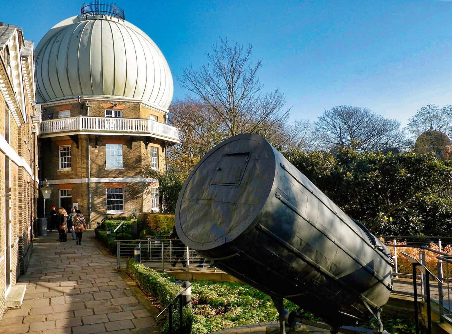 Нулевой меридиан долготы, разделяющий мир на восточную и западную половинки, проходит через Меридианское здание и отмечен стальным стержнем в полу. Огромный купол доминирует над Экваториальным зданием, в котором находится крупнейший в Великобритании телескоп и отличный планетарий Петра Харрисона.