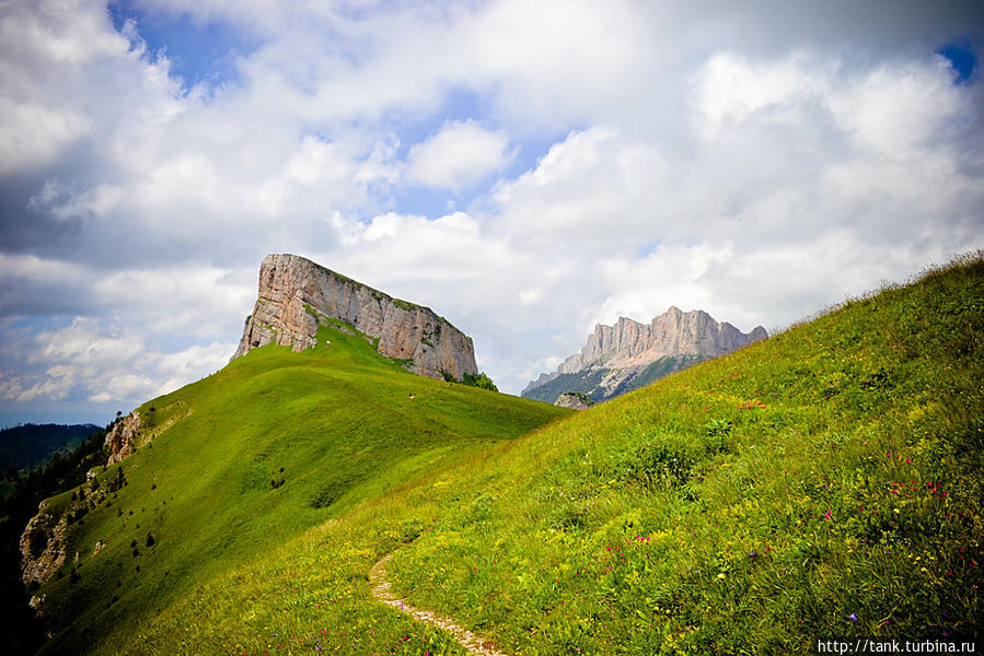 Гора Большой Тхач ( 2368 м). Наклонная плита из очень древних пород. Энергетическое место. Внутри гора хранит воду, уровень которой выше истоков всех бегущих с Тхача рек.