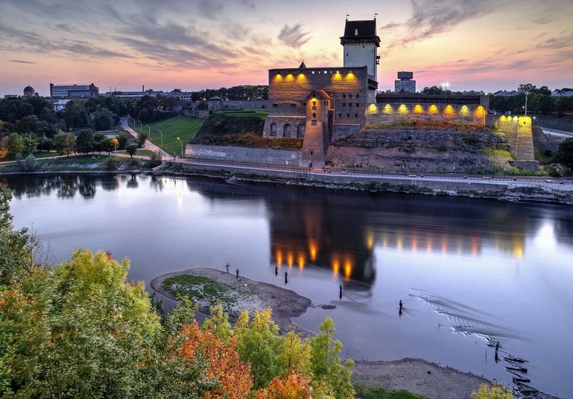Хорошая смотровая площадка, с которой открывается вид на реку Нарву и замок.