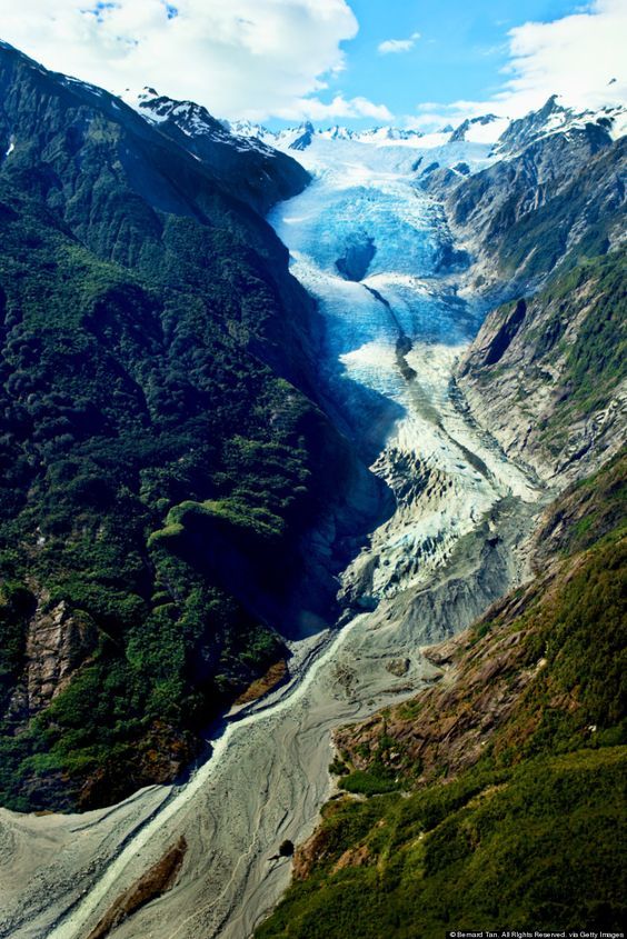 Ледник Франца-Иосифа находится в западной части Южного острова Новой Зеландии. Это самый «быстрый» в мире ледник: из-за таянья вод, которые его питают, ледник движется со скоростью примерно 2 метра в час, успевая преодолеть за сутки приличное расстояние. Лучший вид на ледник открывается с горных вершин, куда туристов доставляет вертолёт из ближайшего городка Франц-Иосиф.