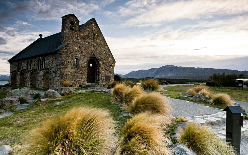 В Новой Зеландии, возможно, нет таких впечатляющих соборов, как в Европе, но есть одна очень красивая церковь. Церковь Доброго Пастыря находится на берегу озера Текапо, на Южном острове, а небольшая часовня является идеальным противовесом величественным горам и ярко-синему озеру.
