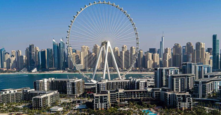 Открывшееся в 2020 году самое высокое в мире колесо обозрения Ain Dubai станет центральной достопримечательностью нового острова Bluewaters у JBR рядом с Palm Jumeirah.