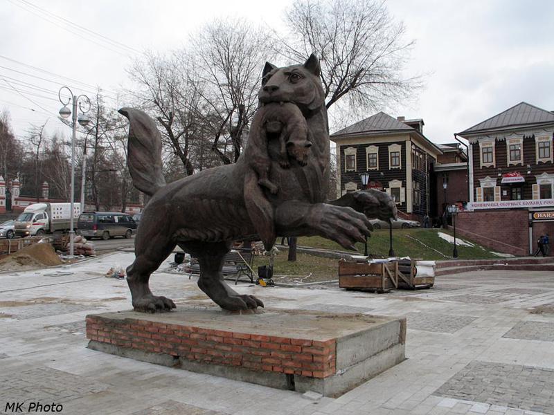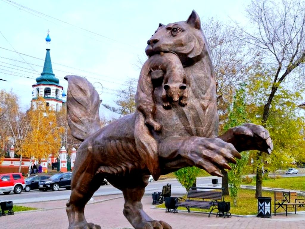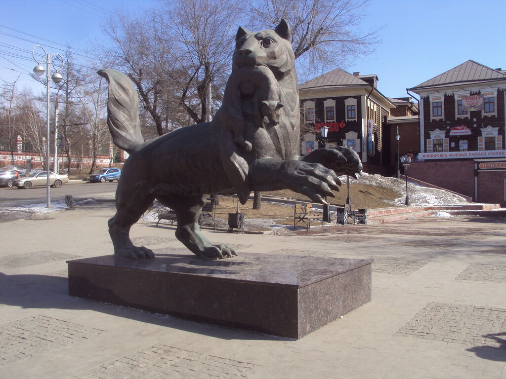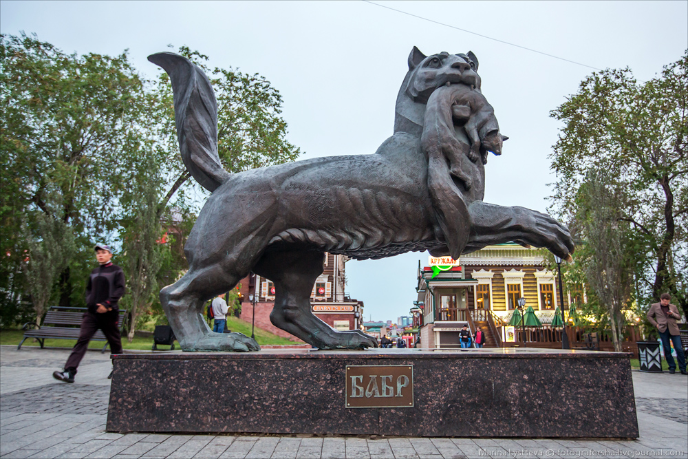 Тюркское название ягуара или пантеры, якуты именуют так уссурийского тигра. Уже несколько столетий фигура этого зверя украшает герб Иркутска и является символом города. В 2012 году в 130-м квартале появилась бронзовая скульптура, изображающая животное во всей красе. В высоту фигура достигает 3,5 метра, в длину – 4 метра. В зубах поднявшийся на задние лапы бабр держит свою добычу – пушного зверька.