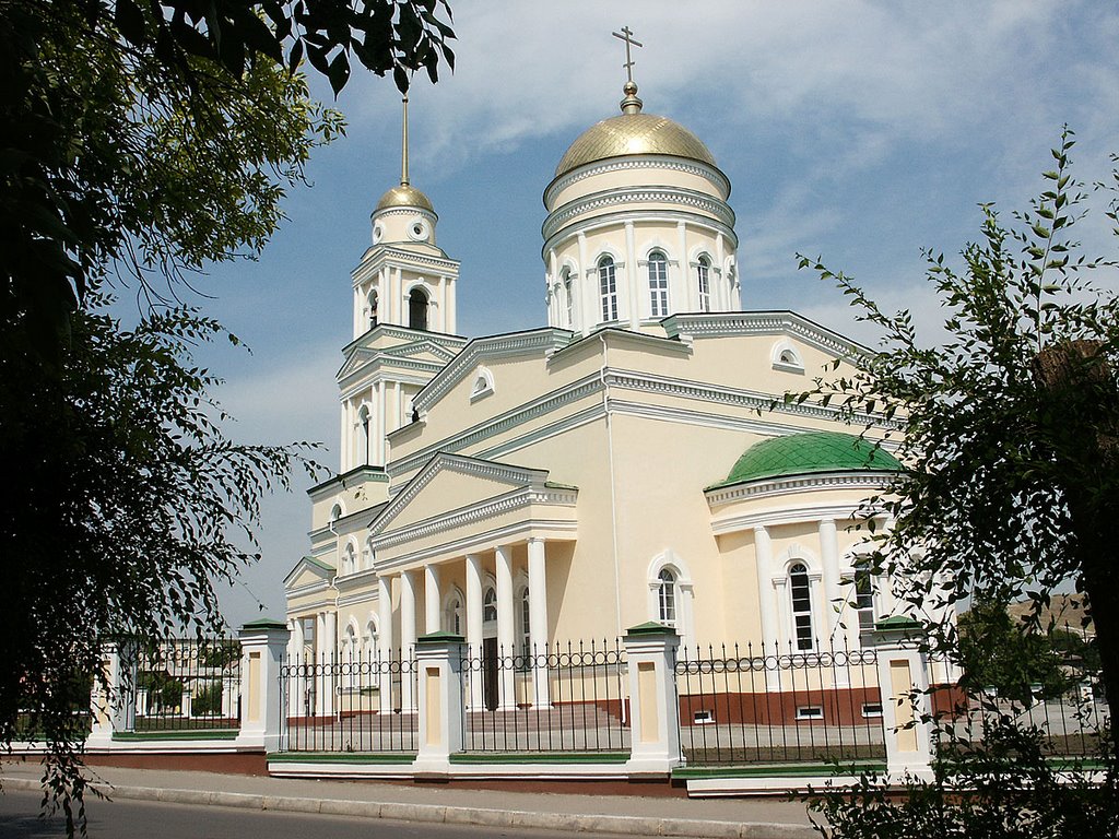 Свято-Троицкий кафедральный собор построен на средства именитого гражданина Василия Алексеевича Злобина в 1809 году. Главный престол был освящен во имя Живоначальной Тpоицы, правый — в честь Казанской иконы Божией Матери, левый — во имя Петpа, Алексия и Ионы, святителей Московских. В 1920-е годы на некоторое время Троицкий собор перешел в руки обновленцев, однако впоследствии б…