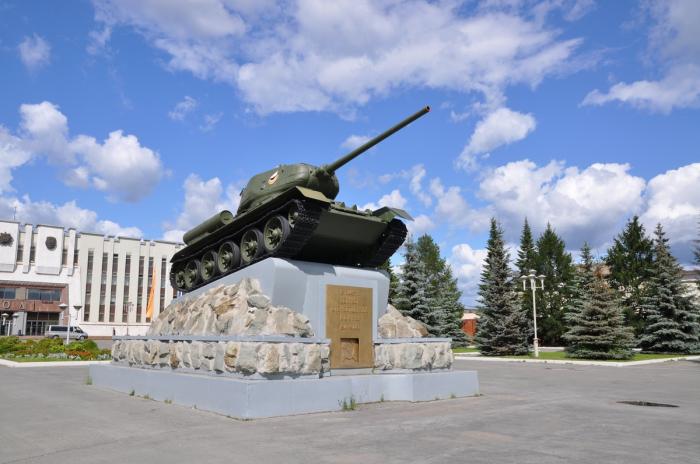 На восточных окраинах города, рядом с площадью Славы и сквером им. Дзержинского, располагается этот памятник, посвященный танкисту и танкостроителю – рабочему, который занимался созданием танков. Скульптурная композиция представляет собой большой двухступенчатый мраморный постамент, исполненный в коричневатых тонах, на котором водружена черная гранитная скульптура, изображающая собственно Танкиста и Танкостроителя. Сделать фото на фоне этого памятник желают многие, тем более что рядом с ним обнаруживаются другие памятные места – Горизонтальная стела 1941-1945 гг. и Памятник Воинам-интернационалистам.