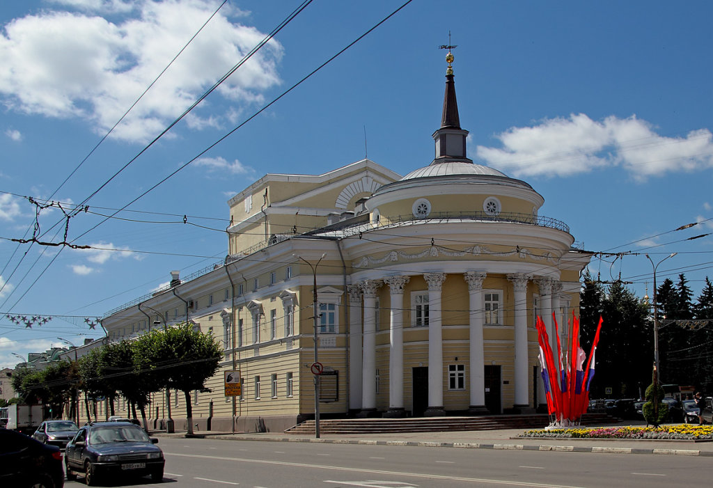 Театр «Свободное пространство» находится в красивом историческом здании городской думы. Его построили в 1799 году. Фасад здания — восьмиколонная ротонда с двухуровневым куполом и конусным шпилем.