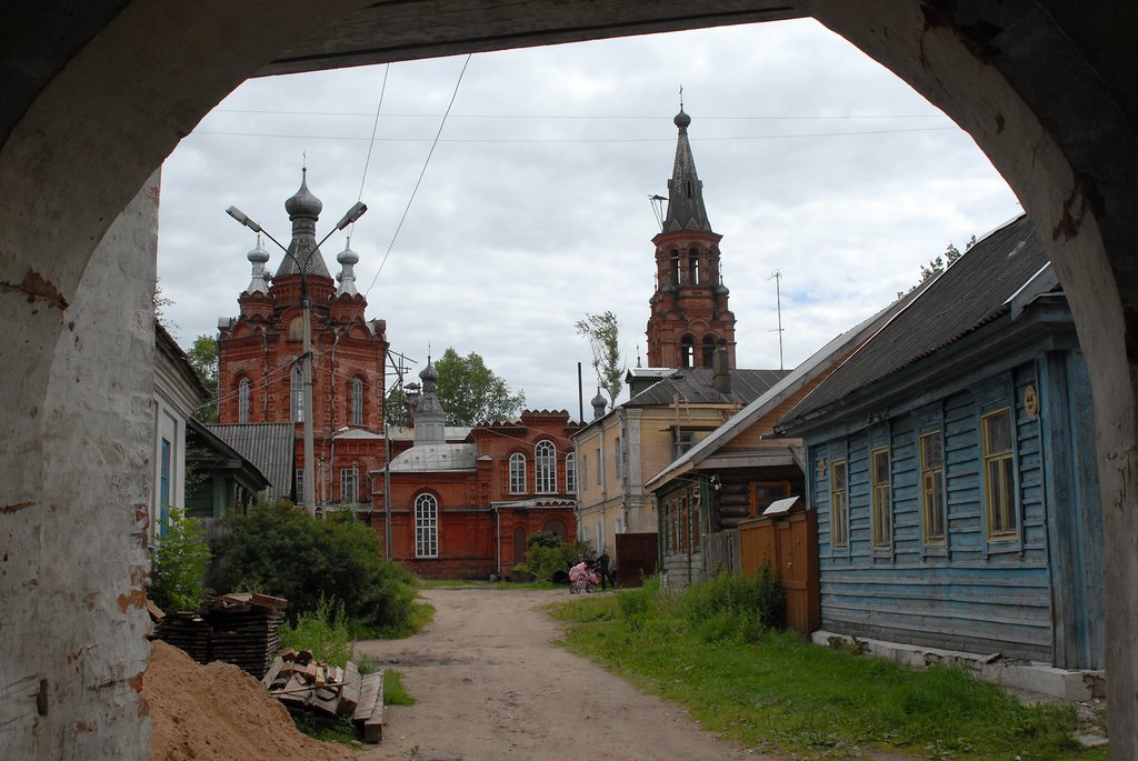 Продолжая движение по ул. Володарского, подходим к двум церквам, стоящим рядом: это Троицкий собор (1697, «нарышкинское барокко», с экспозицией колоколов на колокольне) и жёлтая Воскресенская церковь (1677—1686) с красивым иконостасом.