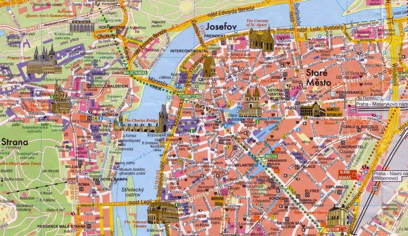 Что касается достопримечательностей, то сам город и есть один большой памятник средневековью. Из наиболее популярных мест, отмеченных на карте, выделим Карлов Мост, Собор Святого Вита, Тынский костел и архитектурный комплекс целиком на Староместской площади. Карта достопримечательностей Праги представлена с официального туристического сайта города Prague.eu.