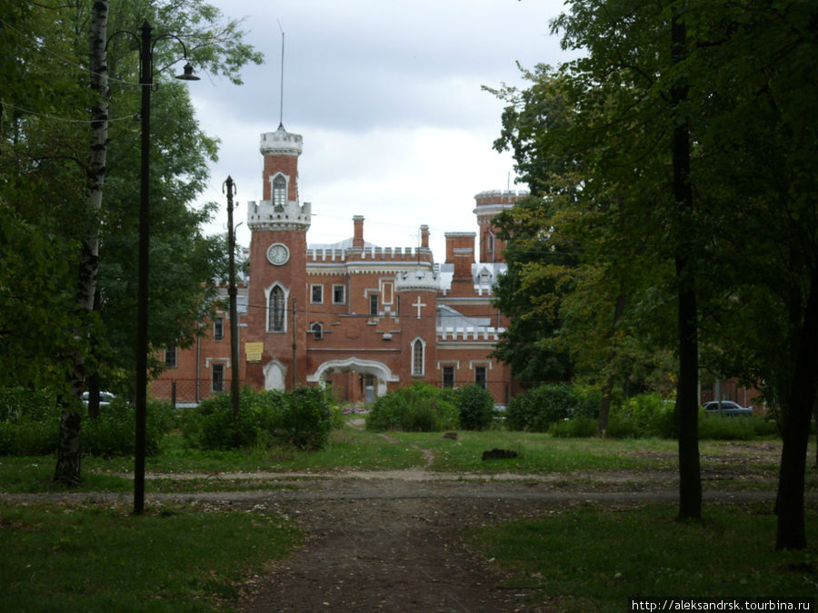 Вокруг — ухоженная территория, зелень, смотреть приятно. Выставка о Мосине располагается в одном из залов дворца Ольденбургских поблизости