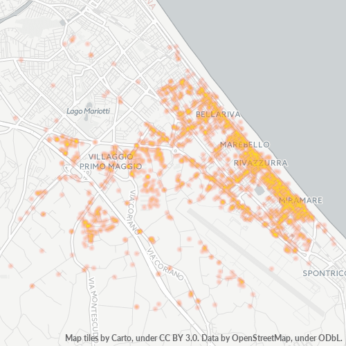 Отели тут все находятся на одной линии. Они сразу же за лежаками. Это очень удобно, и можно быстро выйти на пляж. Но стоимость проживания в местных отелях высока, при этом уровень комфорта и удобства оставляет желать лучшего. Как известно, старенькие итальянские отели очень небольшие по размерам. Комнаты маленькие, а туалеты и вовсе два метра. Но деваться некуда, и приходится жить в них, так как другого выбора нет.