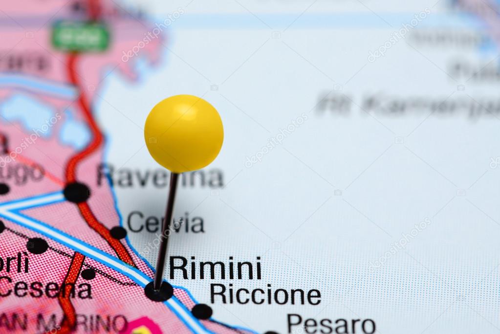 Город находится в регионе Эмилия-Романья, в Центральной Италии. Город с двух сторон окружен реками – Аузой и Мареккья. К северу от Римини протекает легендарная река Рубикон. Расстояния от Римини до крупных итальянских городов: до Болоньи – 115 км, до Флоренции – 170 км, до Венеции – 215 км, до Милана – 330 км, до Рима – 335 км. В нескольких километрах от курортного города находится карликовое государства – Сан-Марино.