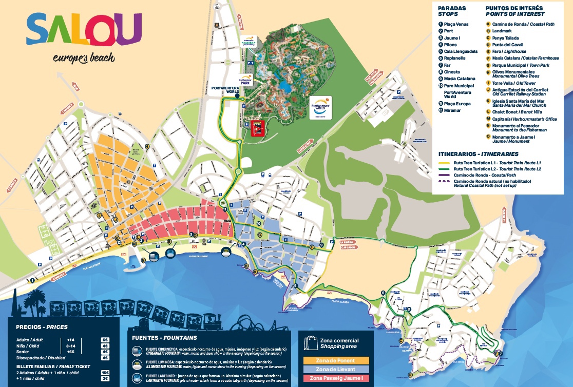 Гуляя по городу, вы непременно увидите маленький паровозик. Его маршрут включает всю территорию города. При помощи него можно устроить независимую экскурсию по окрестностям и аж добраться до парка Порт Авентура.