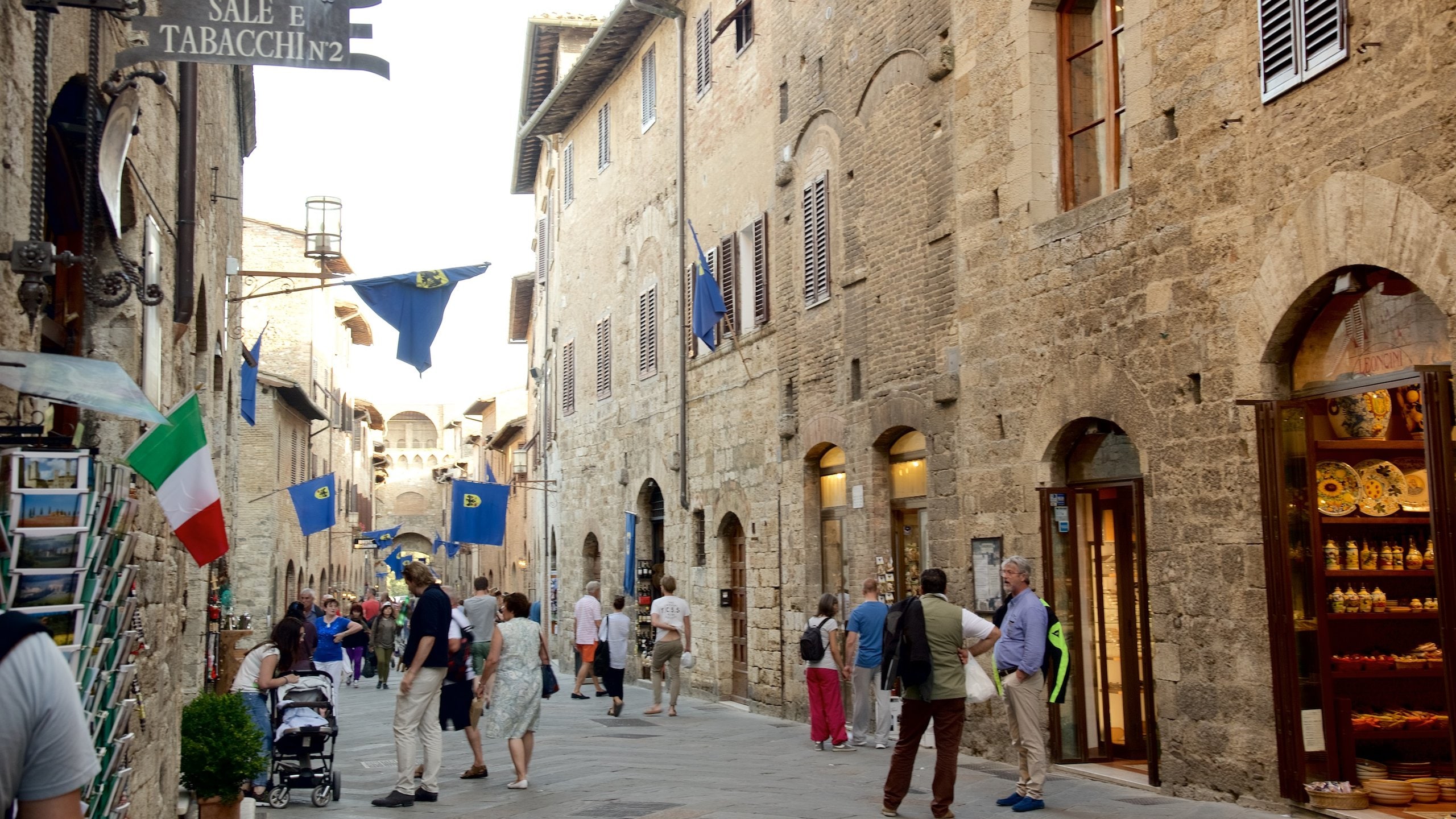 Магазины и бутики, встроенные прямо в каменные стены, тянутся вдоль переулков Сан-Джиминьяно. В средневековом тосканском городке на холмах вы найдете магазины деликатесов, вин, кожи и керамики.