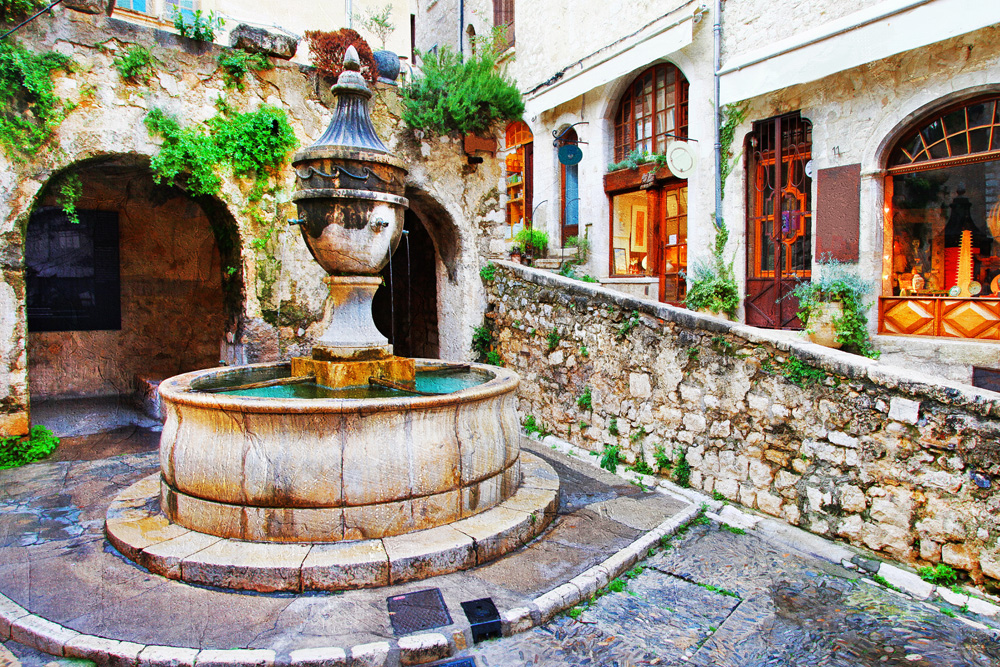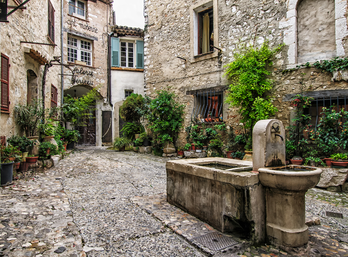 Во французском Провансе располагается живописная средневековая деревня Сен-Поль-де-Ванс, которая слывет по всему миру, как «живая» галерея искусства Лазурного берега. Здесь до настоящих времен сохранились строения шестнадцатых-восемнадцатых веков, где оконные проемы и двери украшены декоративной отделкой, в окружении раскинулись уютные садики. Изюминкой средневековых площадей считаются старинные фонтаны и белоснежные часовни.