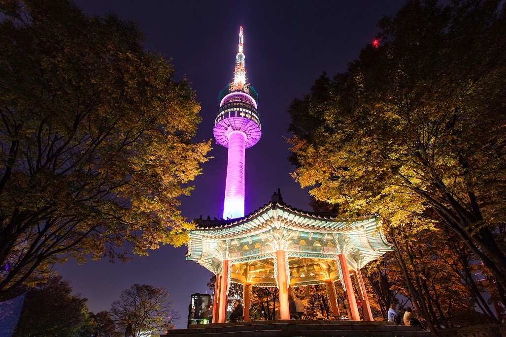 Сеульская телебашня — символ города, располагается на холме на территории парка Намсан.