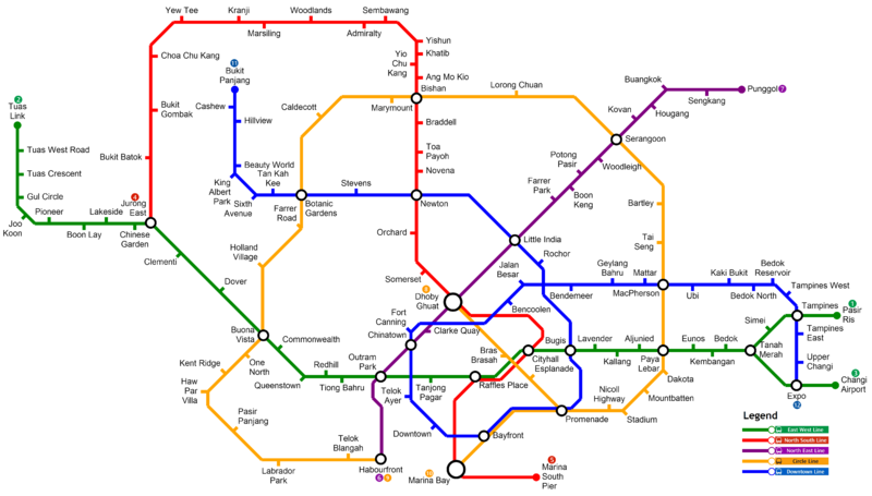 Сингапурский метрополитен охватывает практически все жилые районы города, о чем свидетельствует четко проработанная схема городского метро. Многокилометровая протяженность не является препятствием для движения поездов, а только, напротив, делает его разнообразным и интересным.