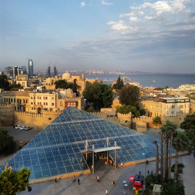 А из старого города виден новый Баку — когда советская застройка встречается с кучей высоток-стекляшек.