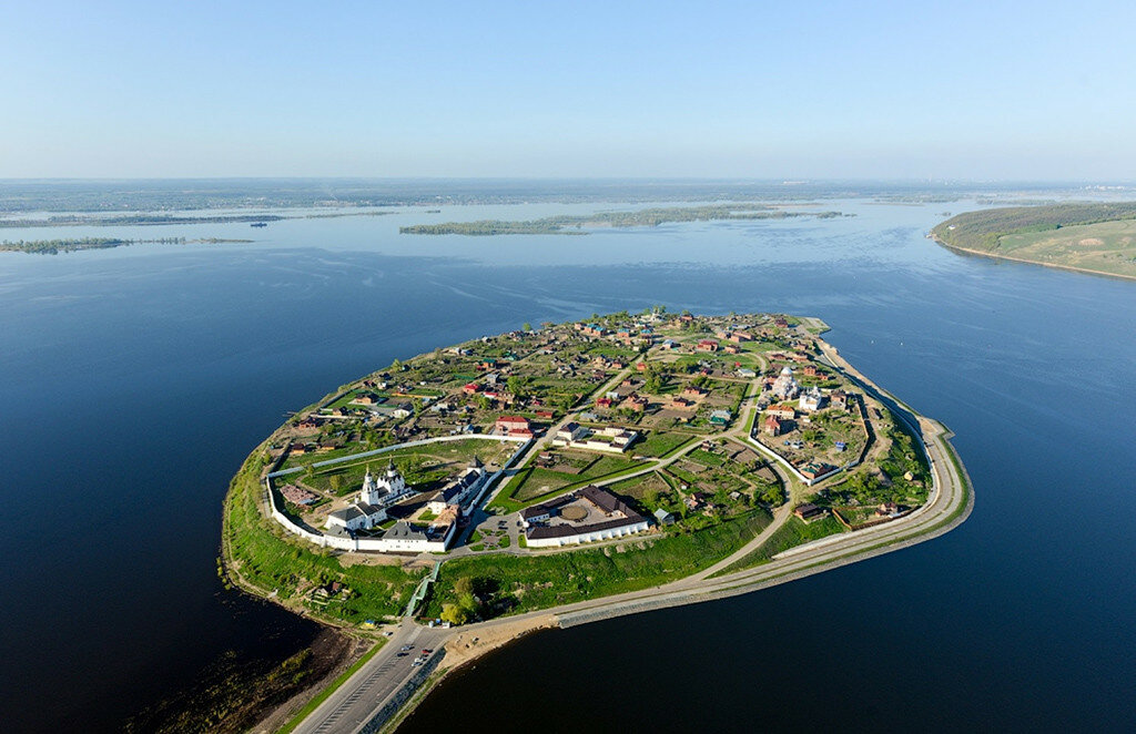 Свияжск не всегда был островным городом. Строительство Куйбышевской ГЭС в середине ХХ века привело к созданию крупного водохранилища, отделившего Свияжск от берега. В 2008 году была построена дамба, и сегодня добраться до острова стало намного проще.