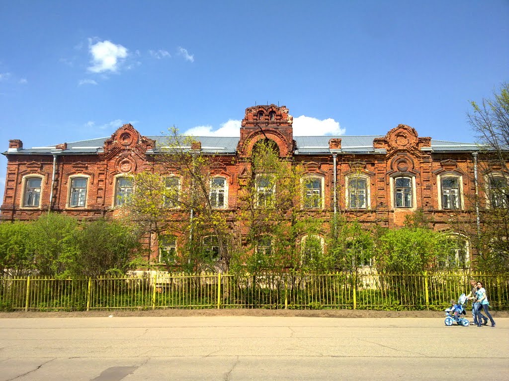А вот городская библиотека занимает сегодня кирпичный дом купца Ф. К. Киселева. Это здание отличается очень сложной кладкой и замысловатыми узорами. Крыша дома Киселева украшена миниатюрными кокошниками.