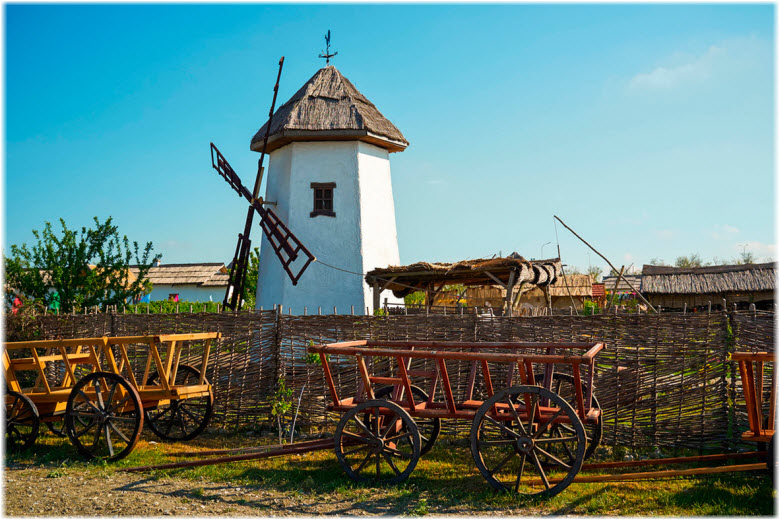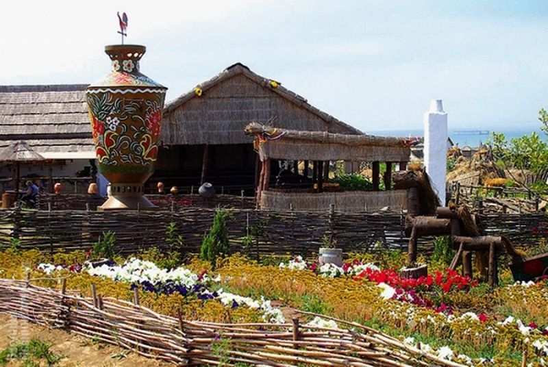 На территории музея воссозданы улицы и застройка казачьего поселения. Все жилые и хозяйственные постройки сооружены с применением старинной технологии и состоят из каменного или бревенчатого каркаса, укреплённых глиной балок и камышовой крыши. В богатых домах комнаты отделаны деревом, а в более бедных жилищах можно увидеть земляные полы и голые стены.