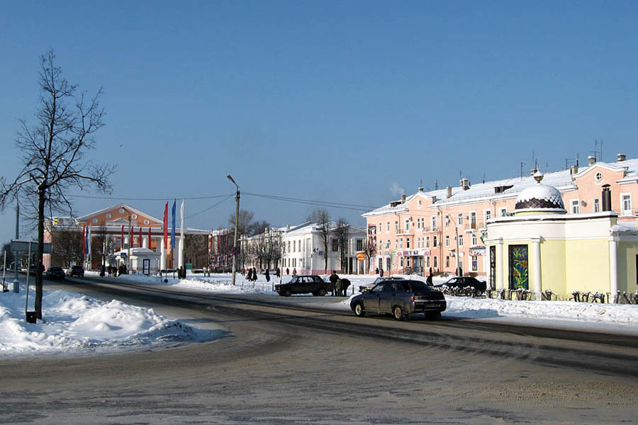 Главная площадь Мышкина расположена в центре города между улицами Никольская и Рыбинская, часть города интенсивно застраивалась в стиле классицизма в начале XIX в.-й -й век. Все эти постройки позже будут объединены в единый архитектурный ансамбль.